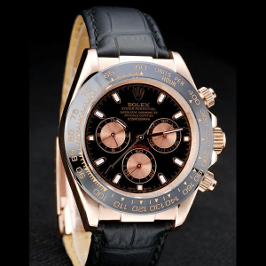 Rolex Daytona Rose Gold Case Black Dial Black Leather Strap BB31112