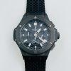 Bracelet:Logo and Hublot Geneve heat embossed black textured rubber strap with Hublot Geneve engraved rose-gold plated push-release hook-buckle clasp