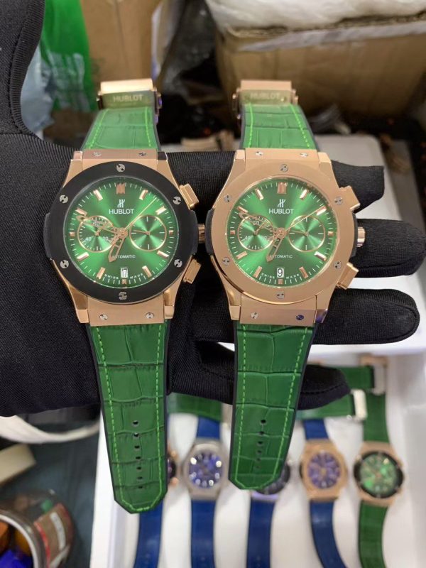 Replica Hublot Big Bang Chronograph Green Dial and Strap 44MM Quartz Movement BB77773