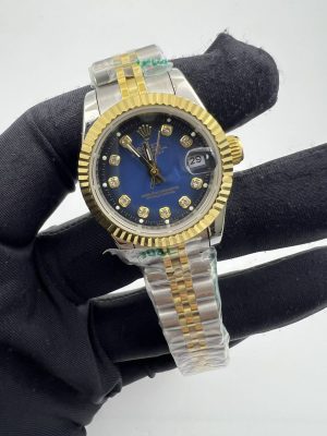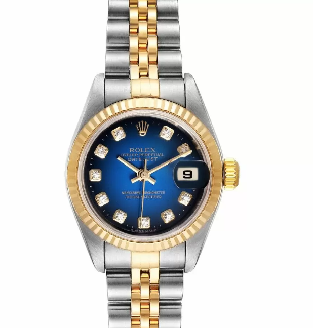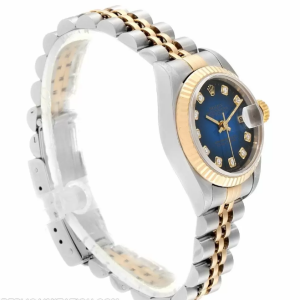 Dial: Blue vignette dial with original Rolex factory diamond hour markers. Date calendar at 3 o’clock aperture.