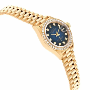 Dial: Blue vignette dial with genuine Rolex diamond hour markers. Date window at 3 o’clock.